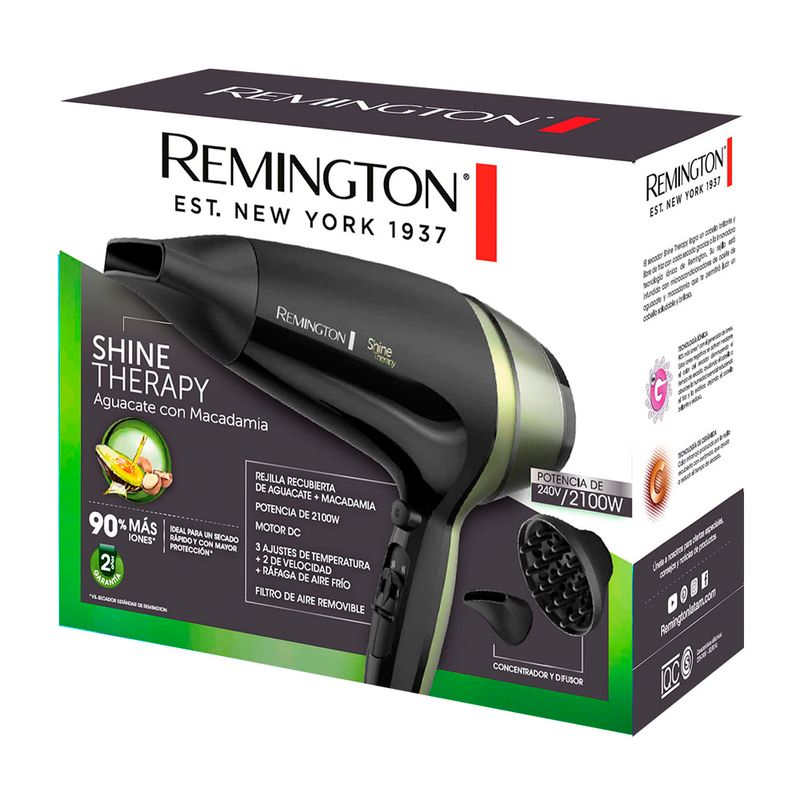 secador emite un 90% más de iones y cuenta con una rejilla infundida con microacondicionadores de aguacate y macadamia permitiendo obtener un cabello brillante y libre de frizz, Cuenta con dos accesorios, el concentrador para centrar la ráfaga de aire en el cabello y conseguir resultados más precisos. Para aquellas con