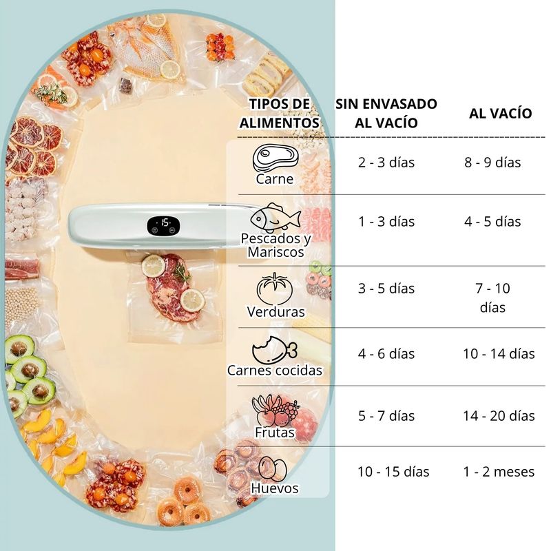 DI ADIÓS AL DESPERDICIO DE ALIMENTOS. Disfruta de comidas frescas, bien conservadas y listas cuando las necesites, con la máquina selladora al vacío.