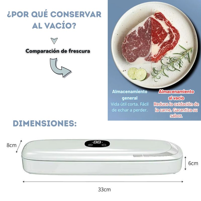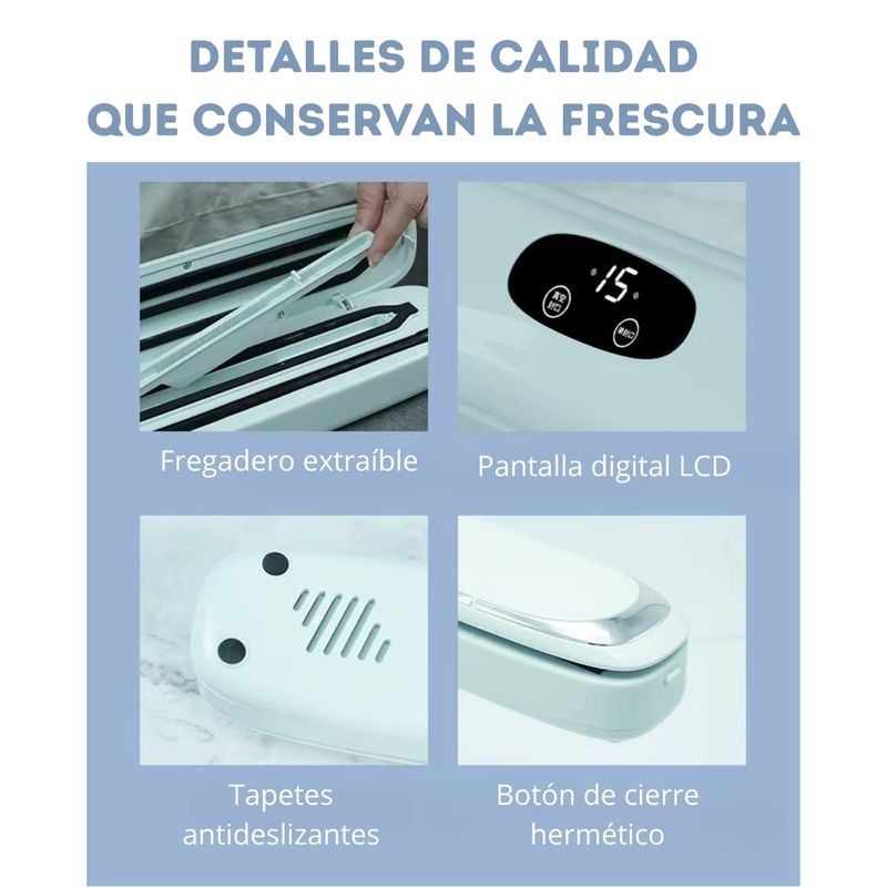 • POTENTE MOTOR de succión que garantiza un sellado seguro, manteniendo el valor nutricional y sabor de los alimentos por más tiempo.