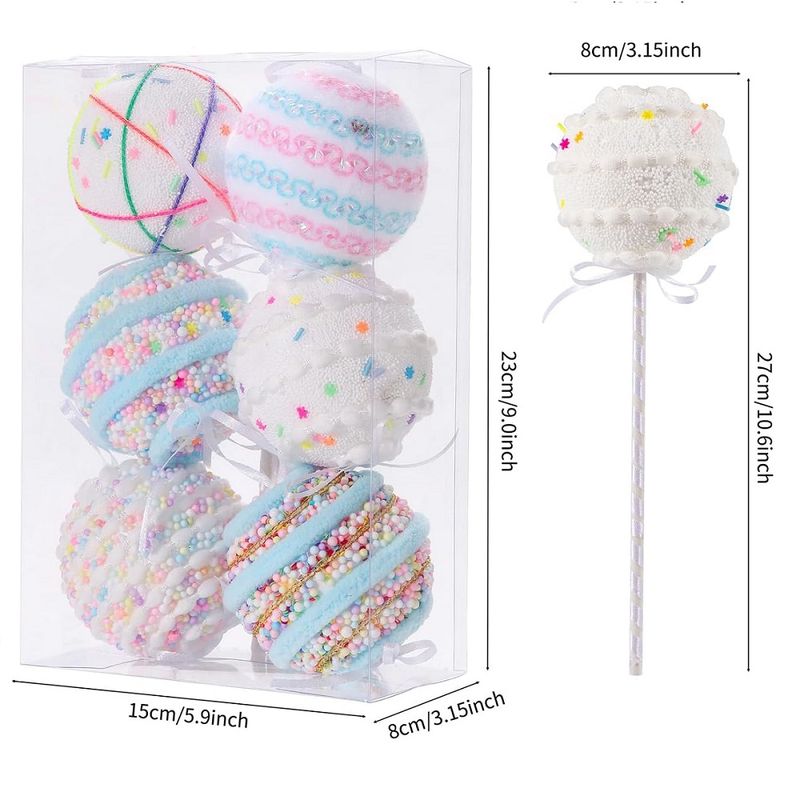 set de 6 adornos de bolas navideñas con glitter brillante chupetin
