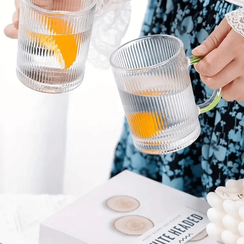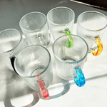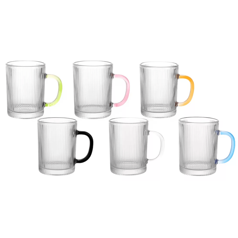 Set de 6 Tazas Acanaladas de Vidrio Asa de Colores 310 ml