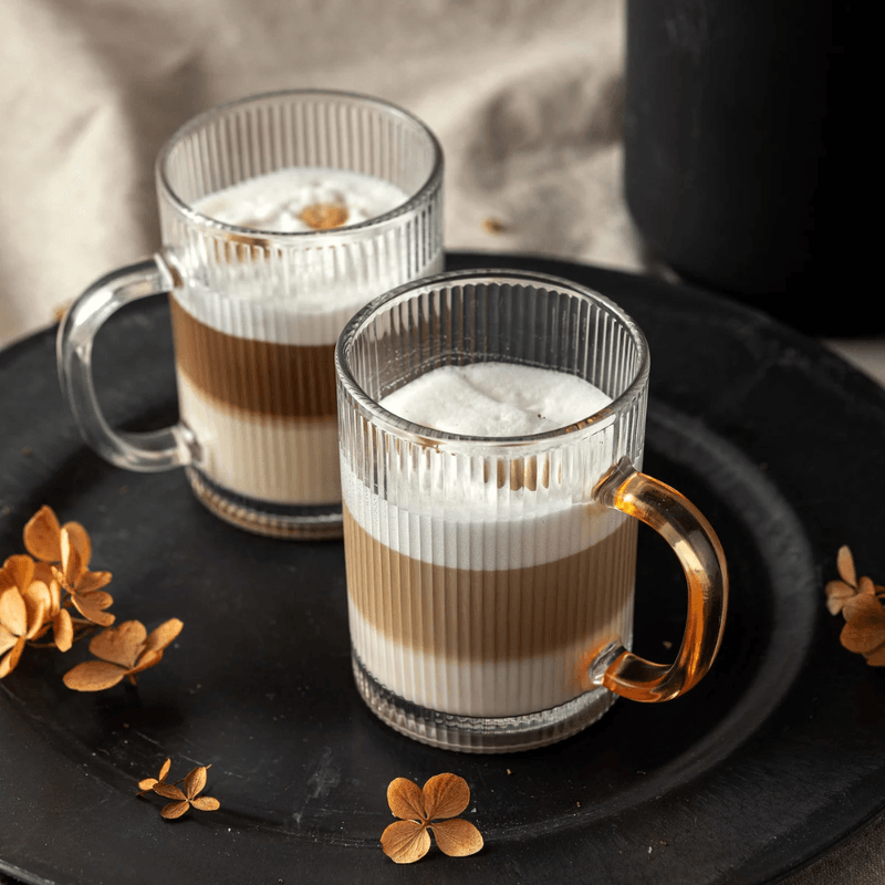 Hechas de vidrio resistente, estas tazas son duraderas, transparentes y aportan un brillo natural que resalta el color y la textura de tus bebidas.