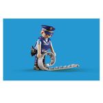 Atención - una banda de ladrones está huyendo. "¡Necesitamos un bloqueo en la carretera principal inmediatamente!" llama el policía a través del walkie-talkie. "No hay problema, nos encargaremos de ello", responden sus dos compañeros. Colocan una barrera, una señal de stop, un cono de tráfico y despliegan la tira de clavos. Por supuesto, el tienen la ayuda del perro policía. "Nadie pasará este control de carretera", los dos oficiales están satisfechos.