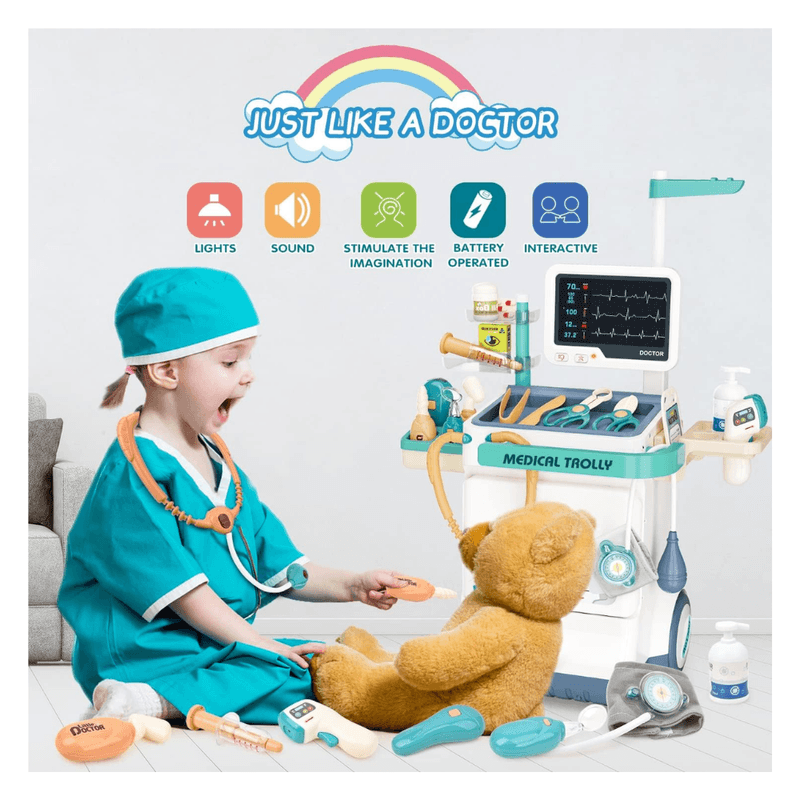 Los niños eligen jugar como médicos o pacientes para experimentar dos procedimientos médicos diferentes.Alivia el miedo y la ansiedad de los niños ante las visitas al médico y despierta su interés en la profesión médica.