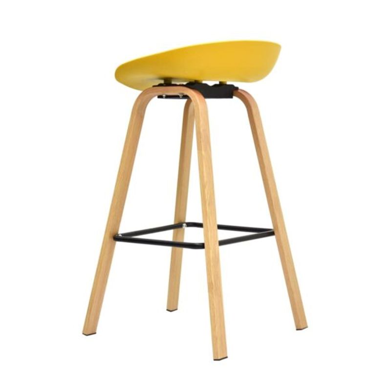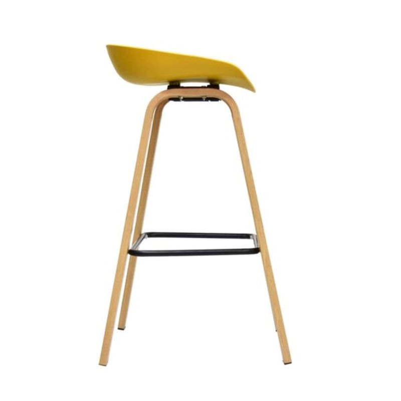 Compra la Silla de Bar Misuri, moderna y resistente, con asiento de polipropileno y estructura metálica en acabado madera. Ideal para barras de cocina y bares.