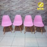 Silla decorativa moderna y funcional con patas de madera y refuerzos metálicos, asiento cómodo en polipropileno, soporta hasta 100?kg. Ideal para hogar u oficina.