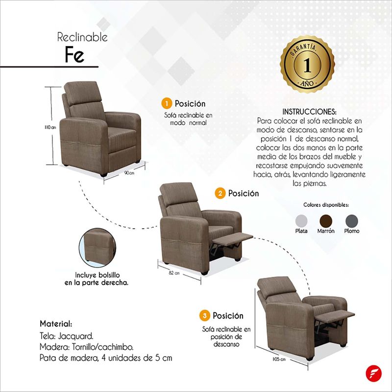 MueblesSalaReclinablesSillon Reclinable FORLI Fe con bolsillo marron