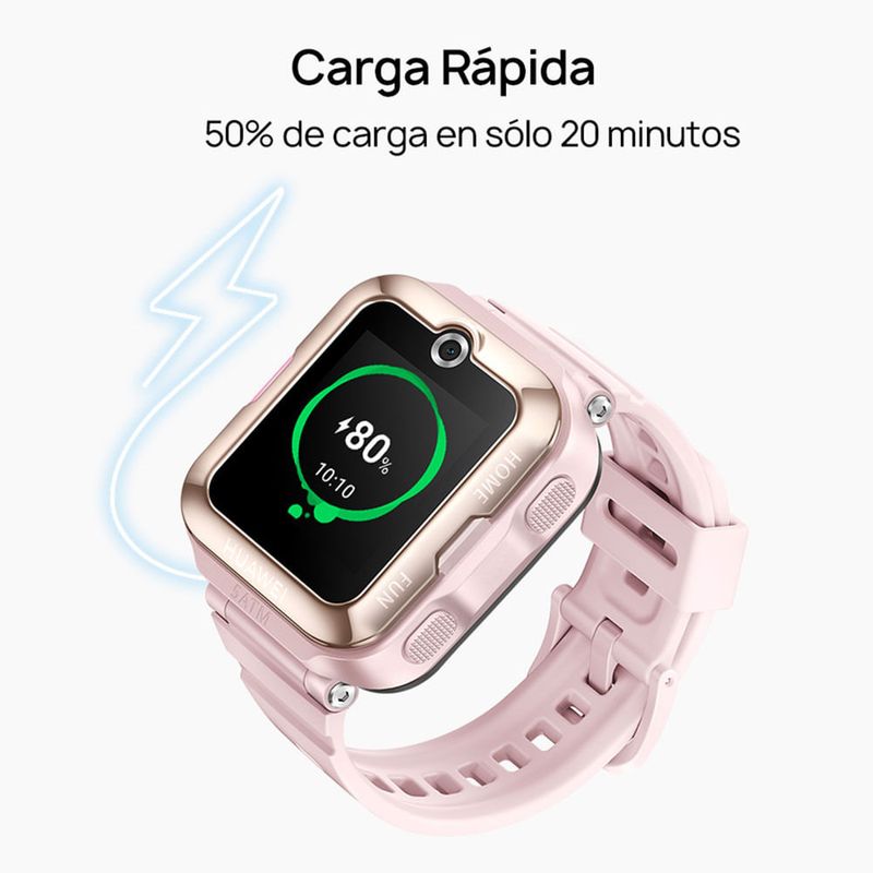 Disfruta de momentos encantadores haciendo videollamadas con tus hijos gracias a la cámara de alta definición de 5 MP del HUAWEI WATCH KIDS 4 Pro. Monitorea exactamente dónde están y lo que están haciendo con total detalle con el servicio de posicionamiento de 9 sistemas con IA1 integrado en el HUAWEI WATCH KIDS 4 Pro. Gracias al diseño 5 ATM2, HUAWEI WATCH KIDS 4 Pro es resistente al agua hasta 50 metros y el altavoz se puede vaciar fácilmente con un clic. El modo de entrenamiento de natación registra diferentes estilos de natación, número de brazadas, duración de la natación.Consigue una carga completa para todo un día en el tiempo que tardas en desayunar, con una carga del 50% en sólo 20 minutos, a través de la batería de 800 mAh incorporada.
