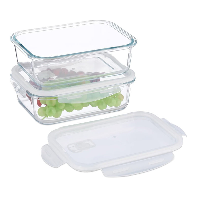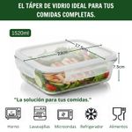 Táper De Vidrio Hermético Rectangular 1520ml Diseño Elegante