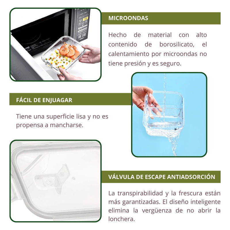 Perfecto para meal prep, almuerzos familiares o conservar platos listos.