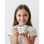 Haz más divertidos los desayunos con esta taza infantil de cerámica resistente, perfecta para leche, chocolate, avena o jugos. Su diseño colorido y adorable encanta a los niños y la convierte en el regalo ideal para casa o colegio.