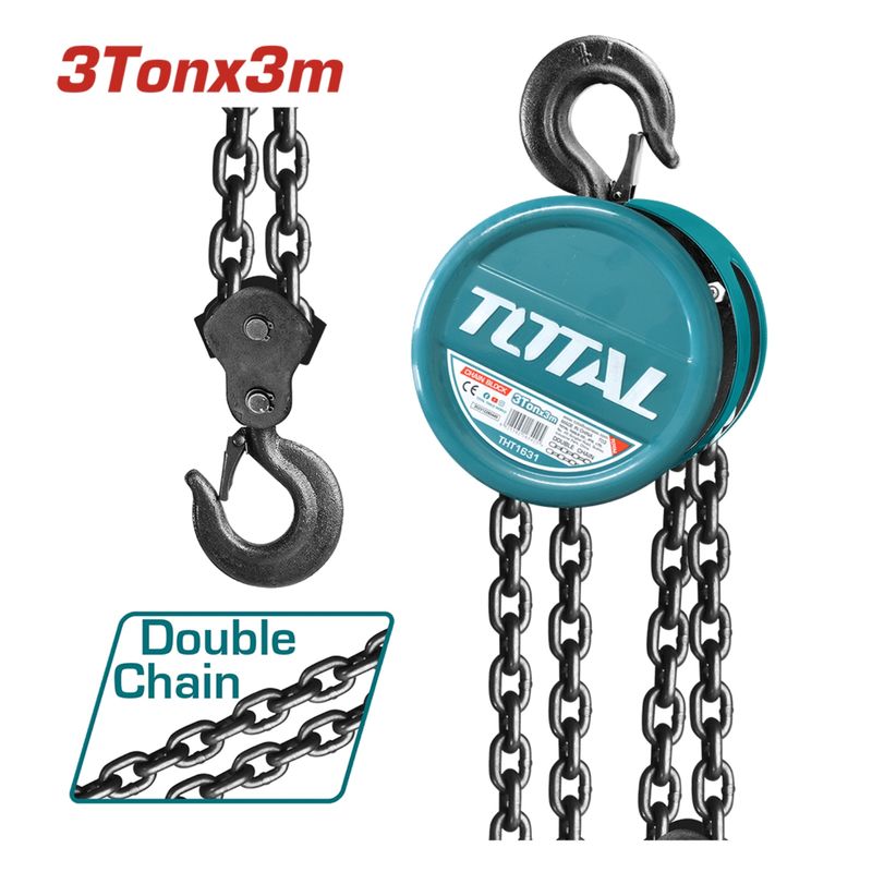 Capacidad3 TonAltura de elevación3 mNº de cadenas2Distancia entre ganchos300 mmFuerza de carga404 NMaterialAcero