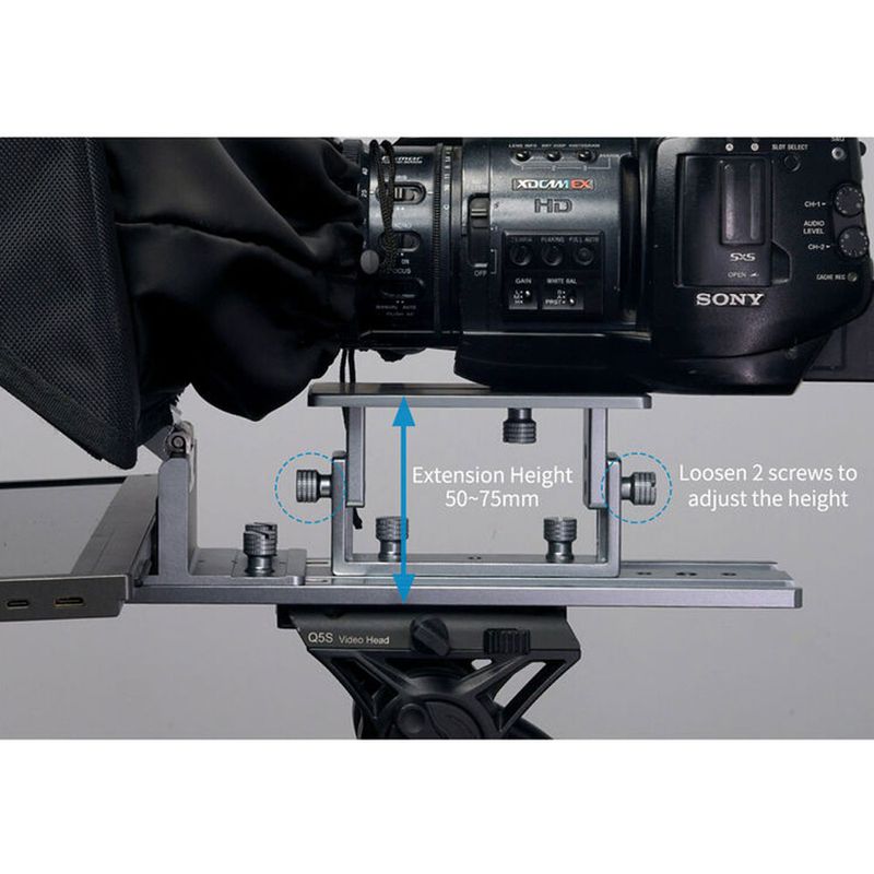 Puedes controlar tu guion con el control remoto Bluetooth y la aplicación FeelWorld, compatible con iOS/Android. El control permite ajustar la velocidad del guion, seleccionar archivos y reproducir/pausar desde una distancia de hasta 120 metros. Ajusta la altura de tu dispositivo de grabación de 5 a 7,6 cm para adaptarlo a diferentes modelos de cámara y alturas de objetivo. Usa las abrazaderas de extensión incluidas y sus soportes de zapata fría integrados para conectar luces de relleno o micrófonos a cada lado del teleprompter. El teleprompter se pliega en un formato compacto que se guarda en el estuche para transportarlo y guardarlo.