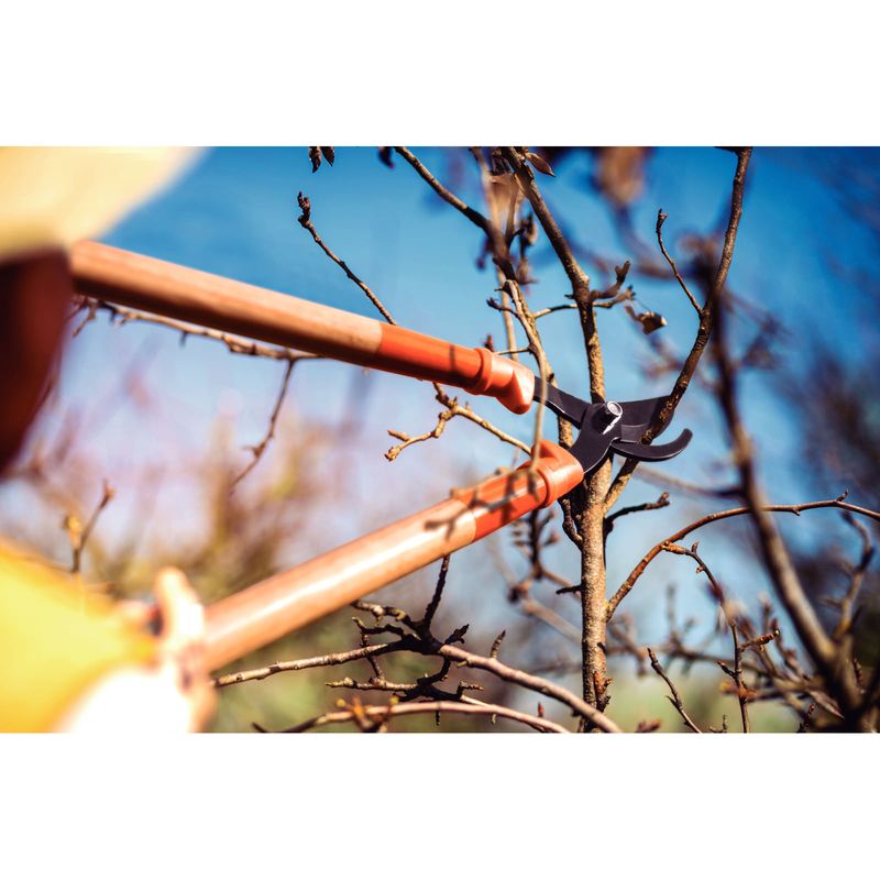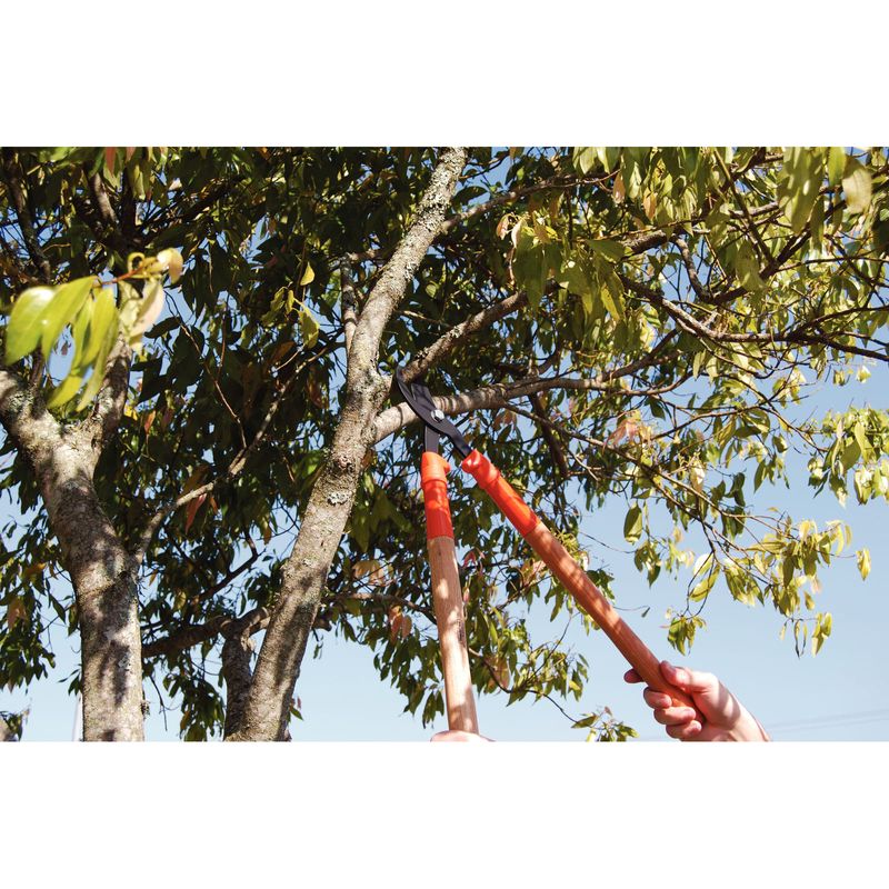 No precisas pasar trabajo para cortar las ramas más gruesas o de difícil acceso en el momento de podar las plantas de tu jardín. Para facilitar ese trabajo, desarrollamos el tijerón de podar tipo bypass Tramontina de acero con mango de madera 60 cm. Con él será más fácil cortar las ramas más altas o que se encuentran en el medio de la copa del árbol. Su mango largo y su lámina afilada y de alta calidad hacen que la fuerza necesaria para el corte sea mucho menor. Eso garantiza más precisión y terminación en tu trabajo.