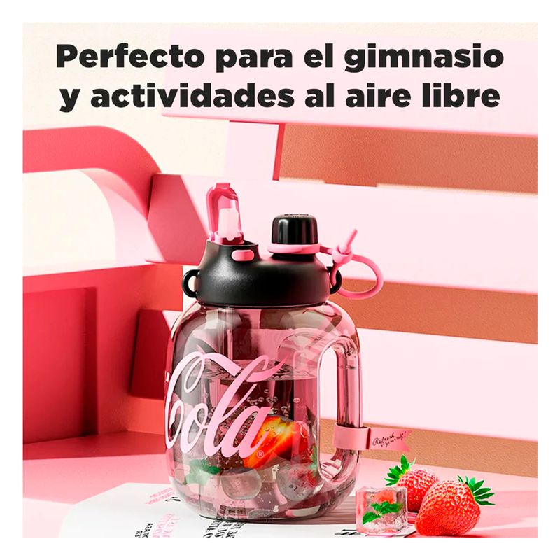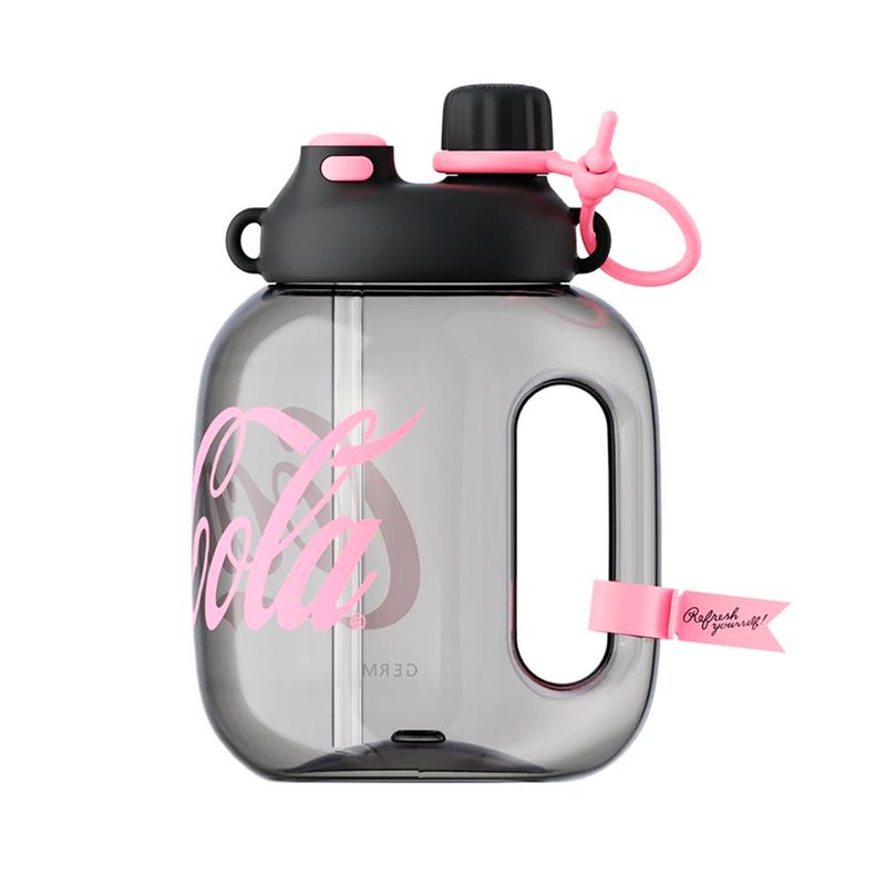 Tomatodo Tritán Coca-Cola Germ con capacidad de 1400 ml en diseño rosa y negro. Ideal para mantener tus bebidas favoritas a la mano durante todo el día, ya sea en el gimnasio, la oficina o actividades al aire libre. Fabricado en material Tritán resistente y libre de BPA.