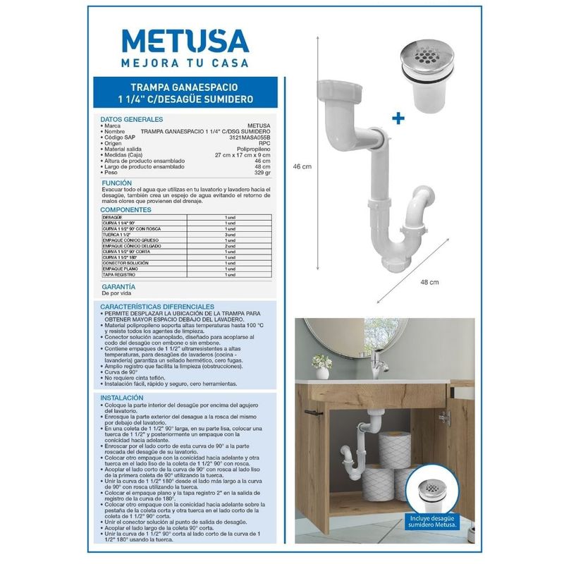 Trampa Ganaespacio 1 1/4" con desagüe sumidero Metusa