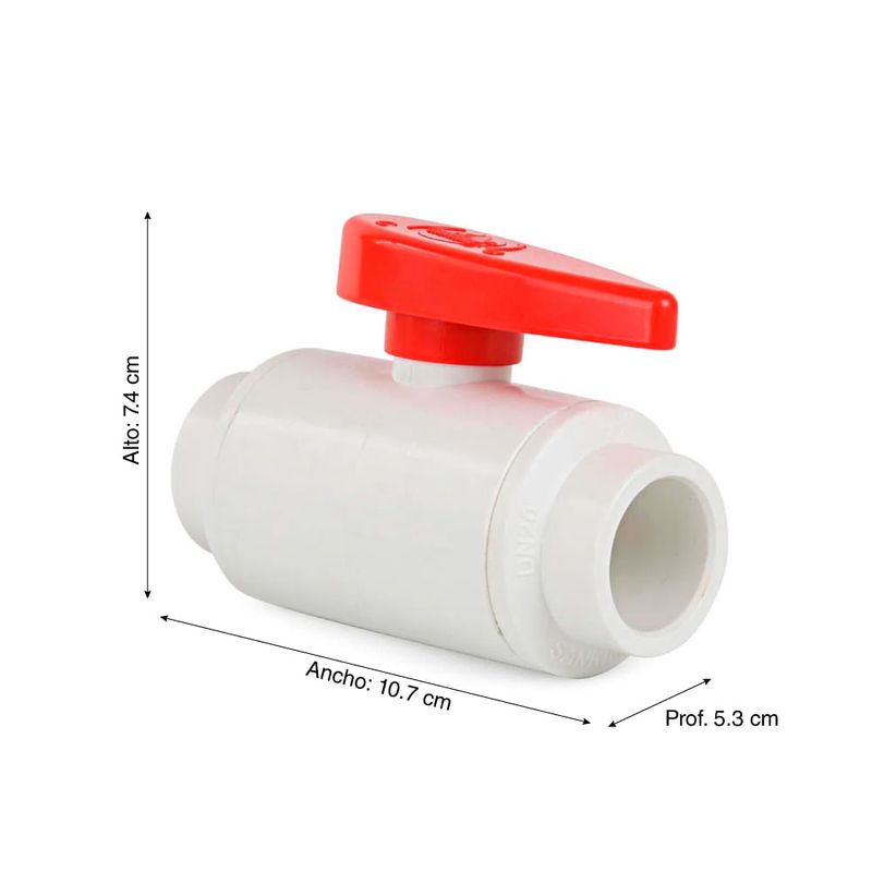 Válvula Bola PVC sin rosca 3/4"