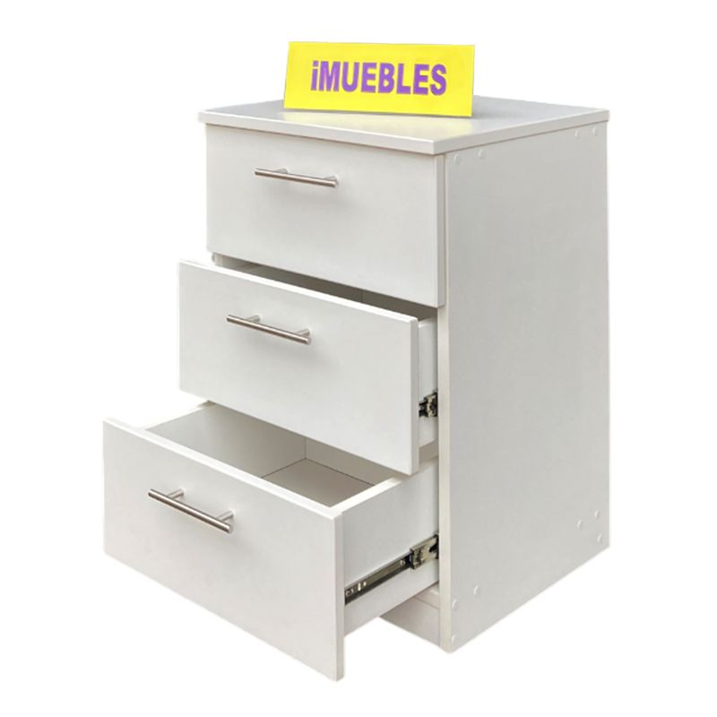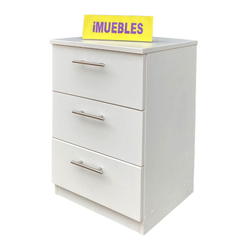 Velador 03 Cajones Mesa de Noche TEMEL. Melamina Blanco