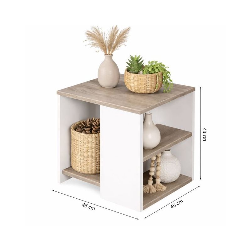 Eleva el estilo de tu sala o dormitorio con la Mesa Auxiliar Moderna de 45 cm – TU MESITA. Fabricada en melamina de 18 mm, cuenta con dos niveles abiertos para organización y decoración. Su combinación Blanco / Coñac aporta un contraste cálido y moderno. Medidas: 45 × 45 × 40 cm.