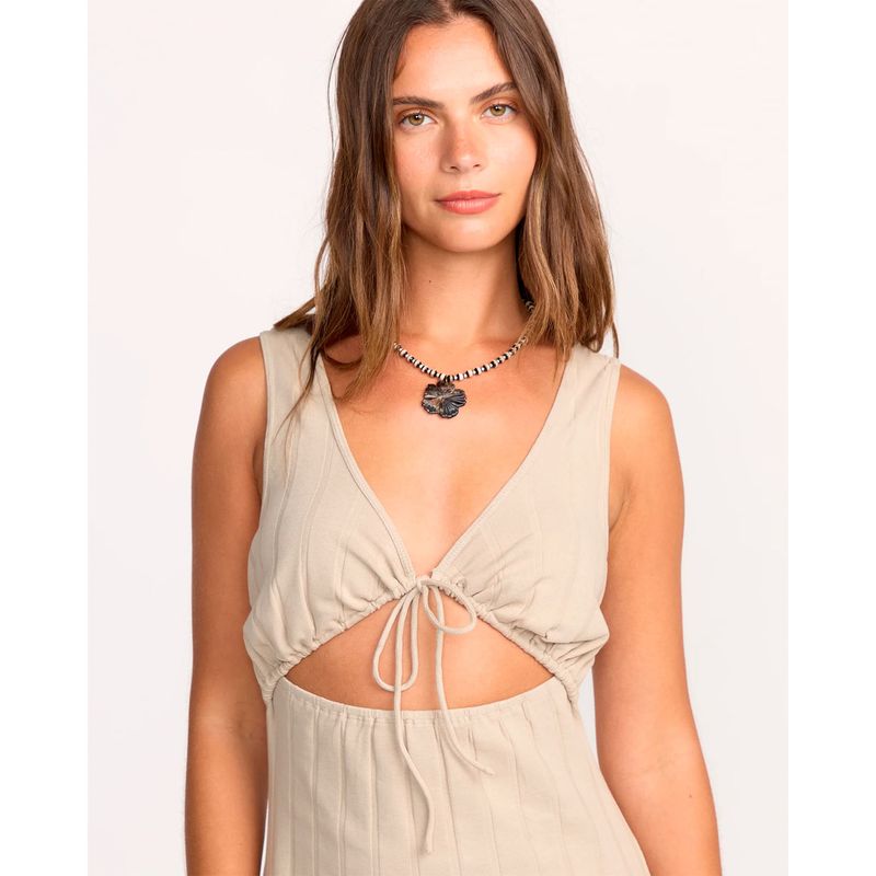 Vestido Para Mujer Vestido Slides Midi Beige Billabong.El vestido para mujer Slides Midi cuenta con una silueta entallada, un lazo bajo el busto, un corte sutil y una abertura en la pierna para lograr el equilibrio perfecto entre sofisticación y comodidad.