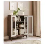 Renueva tu habitación con nuestra Vitrina. El cual combina su estilo moderno con la practicidad que hoy en día todos buscamos. Podrás decorarlo de una manera que tu habitación luzca extremadamente bien. Proporciona un estilo elegante y de buen gusto a tus espacios favoritos con este hermoso mueble. ¿Cómo es nuestra Vitrina?: -Color: Marrón/Blanco y Estructura en Melamina Medidas aproximadas: Largo 80 Profundidad 40 Alto 86 *Producto fabricado a pedido. *No se aceptan cancelaciones por cambio de opinión pasadas las 24 horas. *El producto viene armado *No incluye servicio de instalación *Las fotos se encuentran ambientadas. *La iluminación puede hacer que el color varíe.
