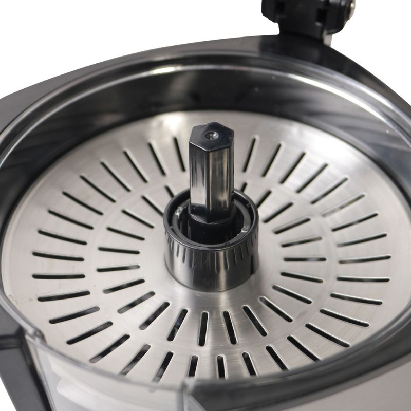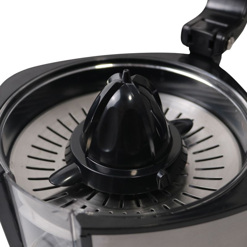 Este exprimidor incluye un colador removible con filtro para obtener jugos sin pulpa, además de un sistema extractor de palanca que facilita la extracción del jugo con mínima fuerza. Su sistema anti derrames mantiene tu espacio limpio y libre de residuos, asegurando una experiencia de uso sin complicaciones.