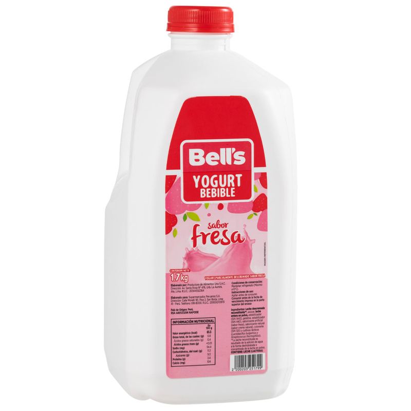 SupermercadoLácteos y HuevosYogurtYogurt BebibleYogurt Bebible BELL'S Sabor a Fresa Galón 1.7Kg