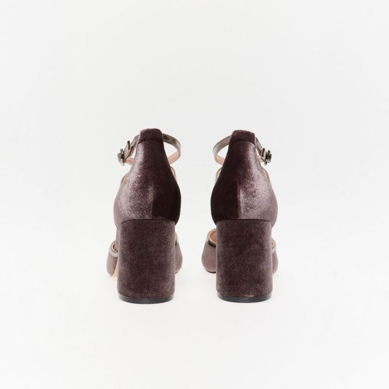 Zapato terciopelo tacón ancho con acabado en pico. Tiras cruzadas con cierre de hebilla. TC7,5cm Textil 80% - Sintético 20%. Compra Online tu Zapatos Tacón Sfera Mujer Terciopelo Gris y conviértela en pieza clave de tu outfit esta temporada de otoño primavera solo en Oechsle.pe